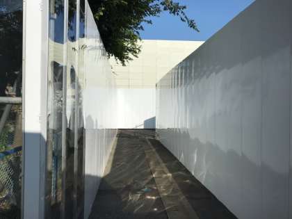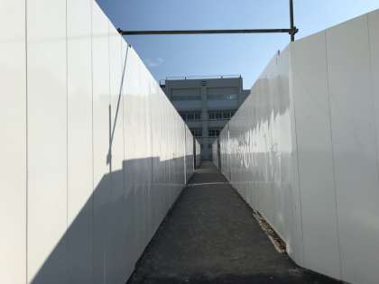 昨日から使用を開始した竹内門からの通路です。9月末、体育館解体完了まではこのルートです。