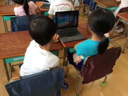 1年生もパソコンに挑戦しています。