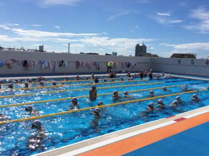 水慣れの後、100メートル自由形がスタートします。