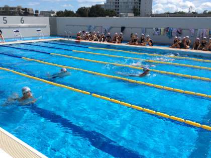 25メートル平泳ぎに入りました。リレーは、予定通り10時30分から始めます。