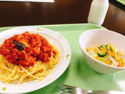 今日は、なすのボロネーゼスパゲッティです。私はスパゲッティといえば喫茶店の定番、ナポリタンとミートソースを思い浮かべますが、最近はスパゲッティ専門店が増えて、アマトリチャーナとボロネーゼに改名したみたいな感じですね。