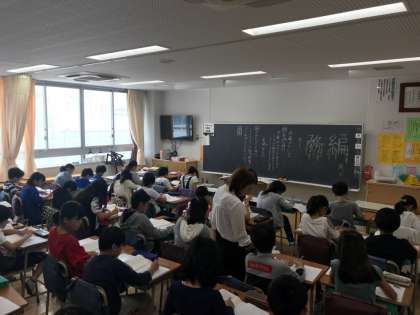 洪庵のたいまつ。めいめいが教科書の内容を読み取り、ノートにまとめています。