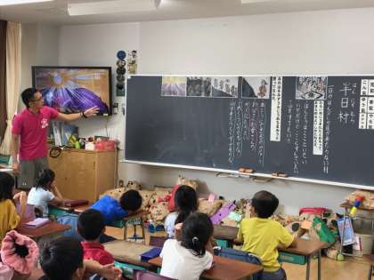 半日村。1日に半分しか日が当たらない村。どうにかして山をくずして、一日中日が当たるようにしたみんなの努力について考えます。