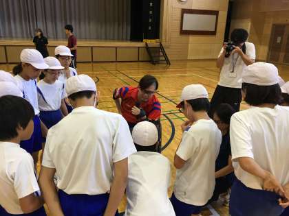 2020年開催の東京オリンピック・パラリンピックに向けての「オリンピック・パラリンピック教育」の一環として、6年生がパラリンピック種目のボッチャの体験をしました。講師は、日本選手権で4度も優勝している藤井金太朗選手です。ルール説明の後、チームに分かれて対戦しました。初めての体験ですが、勝ったチームからは大きな歓声が上がっていました。