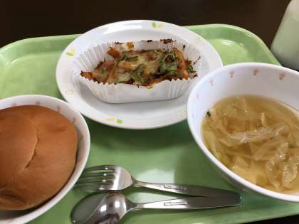 だしの効いたキャベツのスープは、キャベツの甘みが出て、くろざとうパンとよく合います。