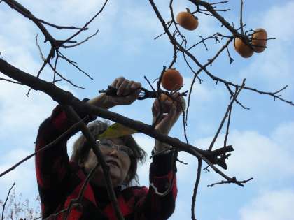 今年は、山野小のジャングルジム横にある柿がたくさん実をつけました。数にして約120個です。そこで、先日、学校長と栄養士で収穫を行い、11月26日と12月6日、4〜6年生の給食として出しました。子どもたちは、山野小の柿だということに驚きながらも、喜んで食べていました。