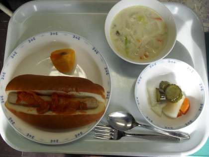 山野小学校の柿が給食に登場