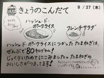 今日のハッシュドポークの美味しさの秘密は、たまねぎにあります。「今日の給食2」でその様子をお見せします。