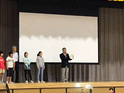 6年生のあいさつの号令に続いて、今日は委員会発表集会を行いました。図書委員会と給食委員会からの発表がありました。図書委員会からはクイズと管理職の先生方からのお勧めの本の紹介がありました。