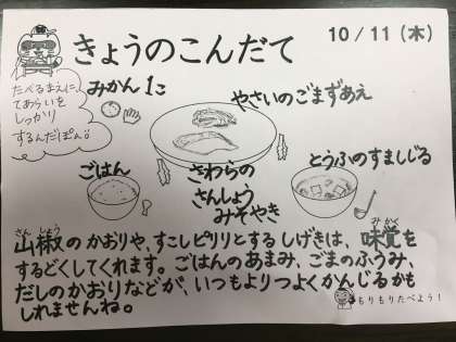 今日は和食です。だしの効いたすまし汁が美味しいです。