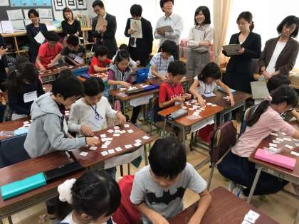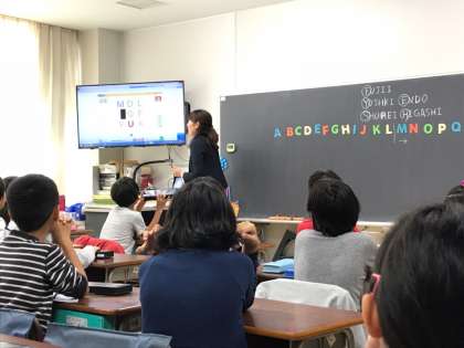 今日は研究授業です。アルファベットとなかよし。歌やクイズ、ゲームでアルファベットと親しむ45分でした。