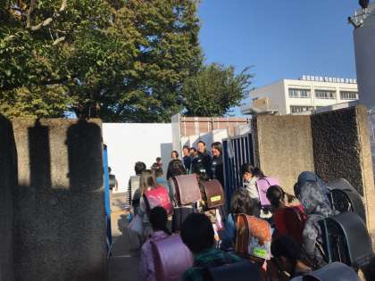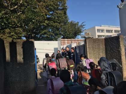 今日は砧町自治会の方々とPTA役員の方々が校門に立ってあいさつをしてくださいました。