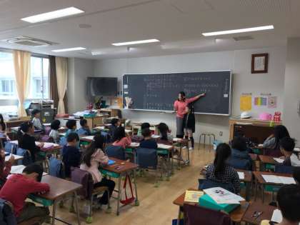 くり上がりのあるたし算。計算の仕方を、理由をつけて説明しています。