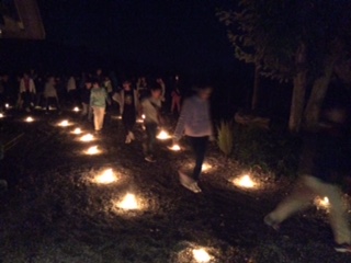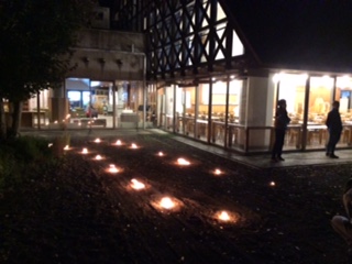 ステキなサプライズが待っていました。宿舎まで光の道が出来上がりました。