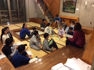 班長、室長会議をしています。今日の振り返りと明日の確認をして、2日目に備えます。