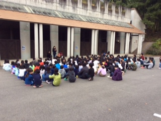 川場移動教室最終日の朝会が終わり、朝食の準備をしています。