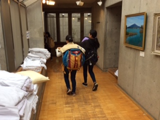 出発準備を済ませ、この後、宿舎を出発します。今日は、川場村めぐりです。なんと今日も良い天気です。やったー