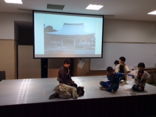3年生の小劇は、世田谷むかし話です。映像や衣装も凝っています。