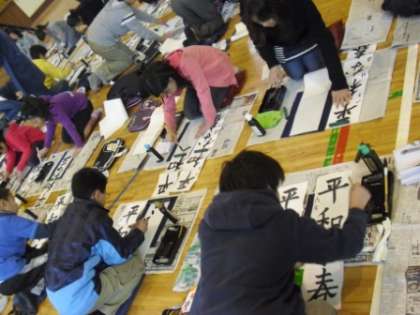 1月13日に席書会をしました。ボランティアの保護者の方々の協力もあり無事に終えることができました。子どもたちは一生懸命書いていました。心を込めて書いた作品はそれぞれの持ち味が出ていました。書いた作品は教室の廊下の前に展示してあります。