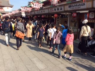 浅草は多くの人で賑わっています。迷子にならずに帰ってきてね。