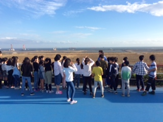 埋立処分場を出発して、学校に向かっています。20分ほど予定より遅れています。