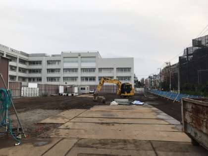 解体工事終了。重機が片付くと、次のステップに進みます。