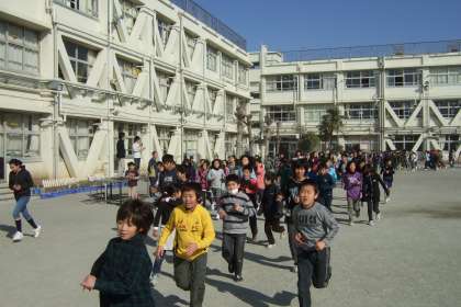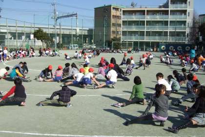 毎週月・水・金曜日の中休みに、持久走タイムを実施しています。第1校庭、第2校庭に分かれて、簡単な準備運動のあと、短い時間ですが元気に走っています。