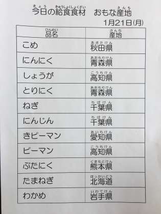 1月21日 今日の給食