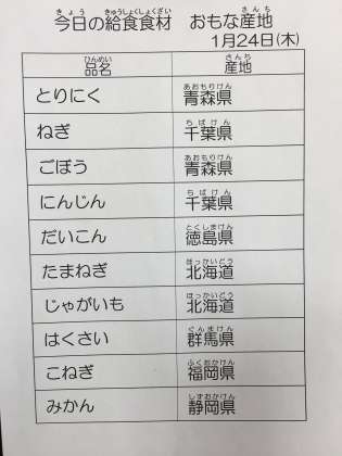 1月24日 今日の給食