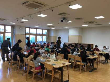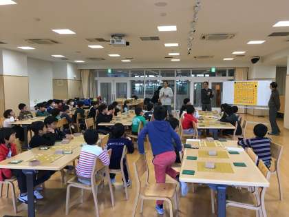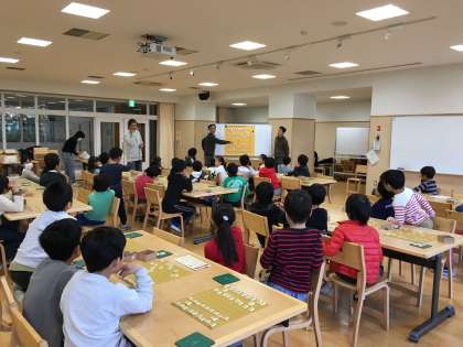 2年生以上の教室です。大人気の将棋教室、今日も50人近くが参加しています。
