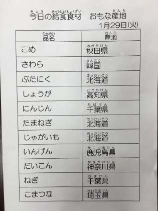 1月29日 今日の給食