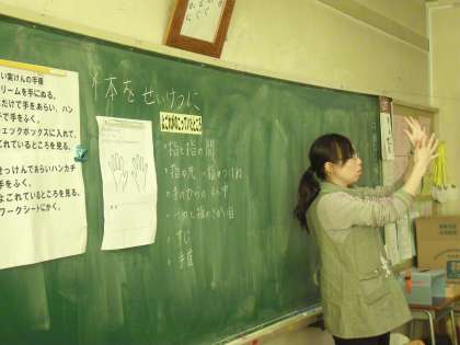 養護教諭に来ていただき、まずは手洗いのチェックから行いました。