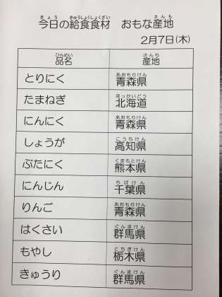 2月7日 今日の給食