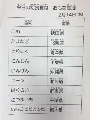2月14日 今日の給食