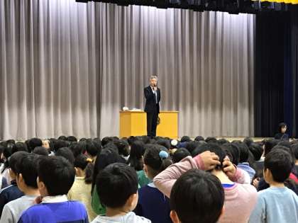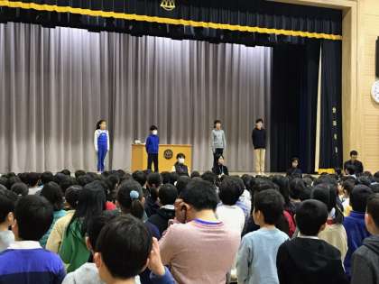 雨風を吹き飛ばすような6年生のあいさつの号令に続いて、校長先生からは残り3週間、もっと成長しようというお話がありました。