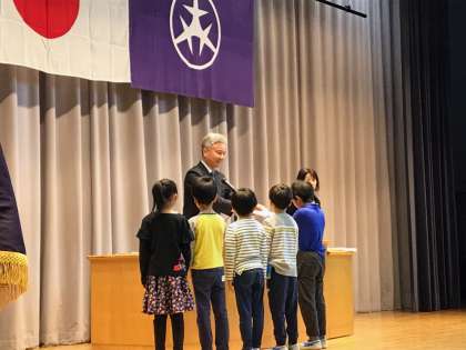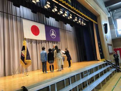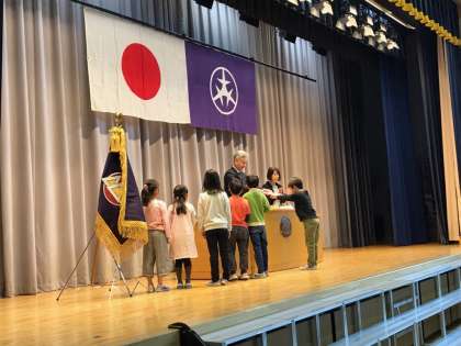 まず、各クラスの代表児童が修了証を受け取りました。1〜3年生の児童です。