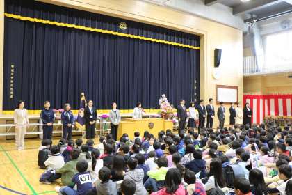 今日は平成31年度の始業式です。全校児童1089名、31学級での出発です。あいにくの雨模様でしたが、子どもたちの気持ちのよいあいさつが、校舎に響き渡りました。まずは着任式を行いました。新たに山野小学校にいらした先生方に、拍手が自然と起こる温かい子どもたちを見て嬉しく思いました。