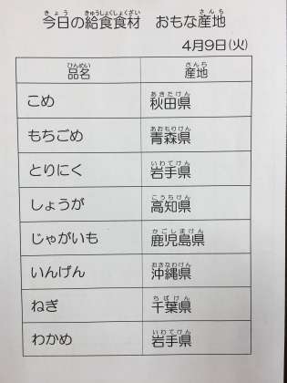 4月9日 今日の給食