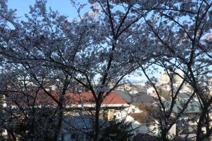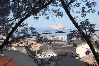 5年5組の教室からは桜がすばらしいです。桜の間からの富士山もご覧になれるでしょうか。