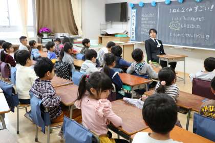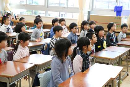 各教室を回ってみました。姿勢正しく先生の話を聞いている子どもたちに感激です。やる気一杯の子どもたちを見て、嬉しくなりました。