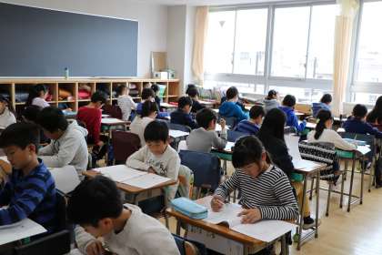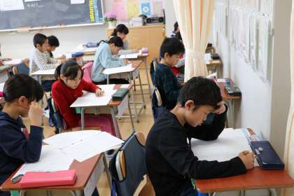 今日は4〜6年生の、学習習得確認調査を実施しました。これは世田谷9年教育の一環として行っているテストです。小学校は4教科(国語・社会・算数・理科)中学校は1年生が4教科、2年生以上は英語が加わり5教科の実施です。