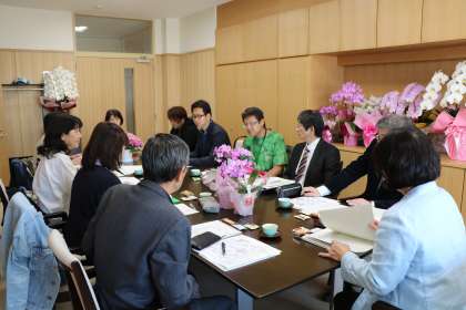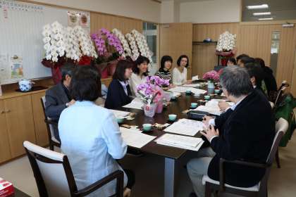 写真は、会議の様子と今年度学校運営委員会のみなさんです。