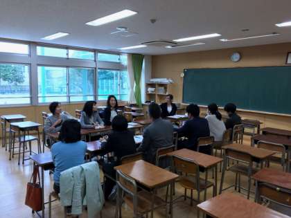 砧中学校、砧小学校、明正小学校、山野小学校の四校の教員が集まり、研究を深める話し合いの1回目が行われました。全体会の後、10の分科会に分かれての協議が進められました。
