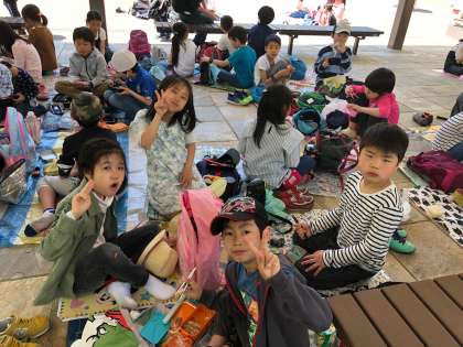 おやつまでたどり着けるでしょうか。美味しそうなお弁当に笑顔がたくさんです。