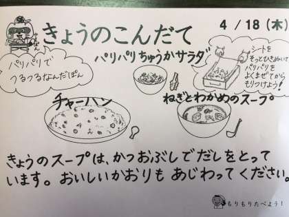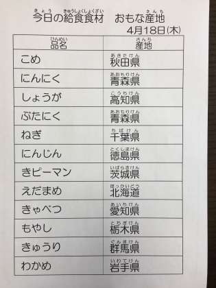ホームページ用の写真を撮ったのですが、昨日の給食、ちらしずしの写真とよく似ていたので、危うく昨日の写真を載せてしまうところでした。