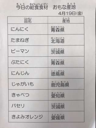 4/19 今日の給食