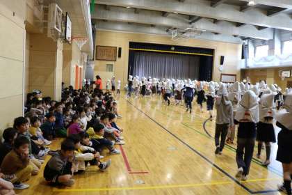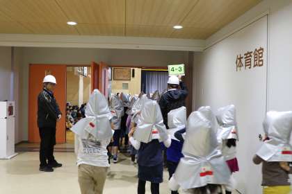 今日は今年度初めての避難訓練でした。1年生は体育館の後方に座り、2年生以上の避難訓練の様子を見ていました。教室が変わり、避難経路を確認する大切な1回目の訓練です。