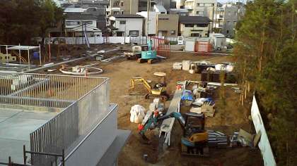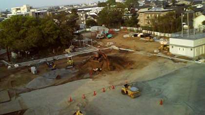 大井さんのドローンによる校庭整備工事の様子をお送りします。第一校庭の整備完了が見えてきました。