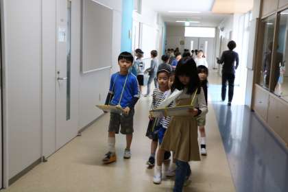 2年生の優しいリードのもと、地図を見ながら学校たんけんができました。