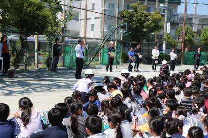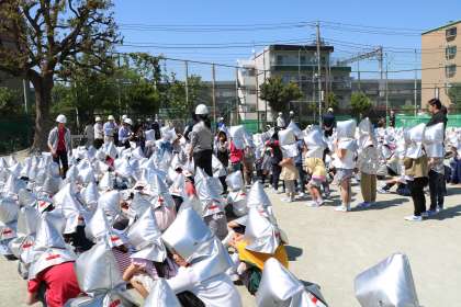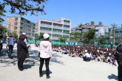 1091人全員避難したことを確認しました。「人の話を最後まで聞くことは、自分の命を守ることです。」と副校長先生からのお話もありました。教室へ帰るまでが避難訓練です。